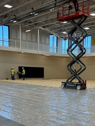 Many maple gym floors are designed to absorb the impact of athletes jumping on them. That material isn't designed to handle excessive weight.